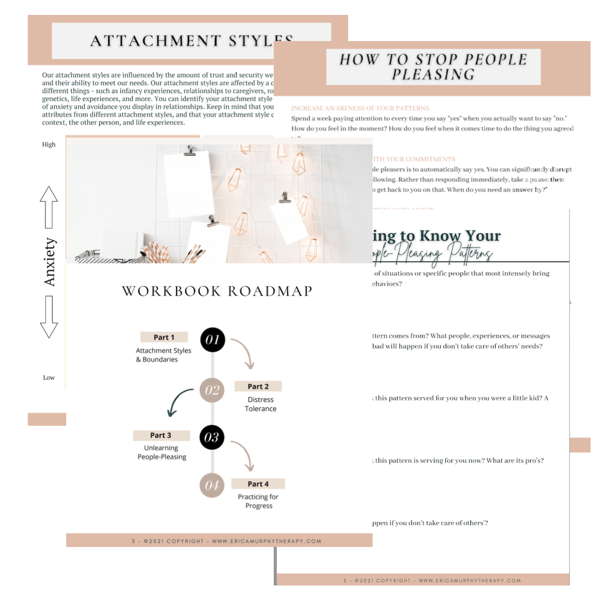 Then this workbook is for you! This 20 page self-guided workbook is packed with crucial info and reflection prompts to help you identify your attachment style, balance your boundaries, increase distress tolerance, and practice techniques for reducing people pleasing behaviors. So if you’re ready to start building your confidence and learning how to prioritize YOU - get your guide now!